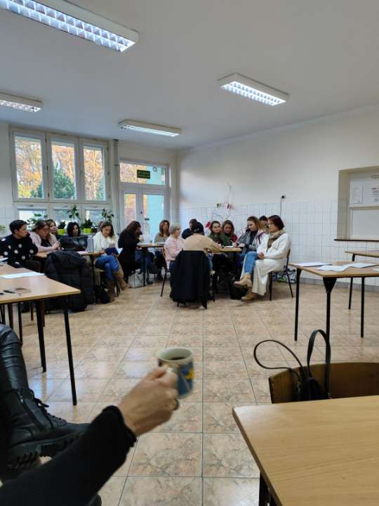 Warsztat dla nauczycieli, Zespół Szkół z Oddziałami Integracyjnymi w Pustkowie - Osiedlu stawiający pytania o rolę pracy nauczyciela a także o jego dobrostan psychicznym.