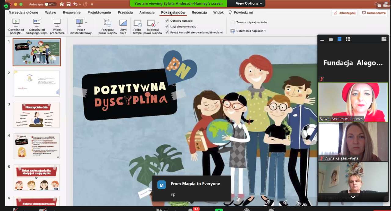 Jak podkreślili uczestnicy warsztatów, to było niezwykle praktyczne spotkanie z Sylwią Anderson - Hanney. Podczas warsztatów z pozytywnej dyscypliny uczestnicy otrzymali pakiet narzędzi do jej wdrażania w środowisku szkolnym oraz przedszkolnym.