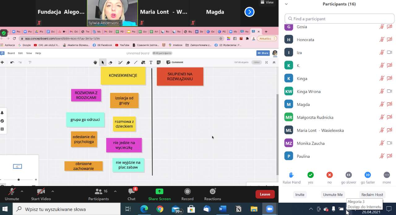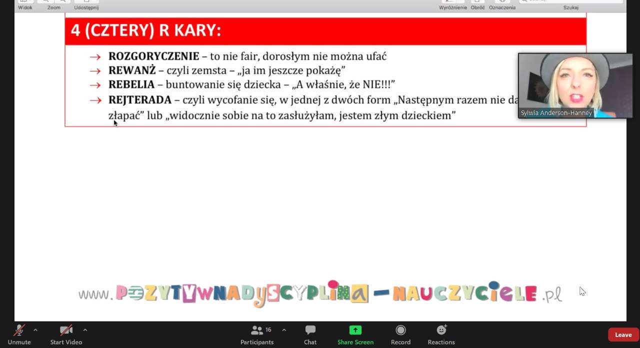 Kolejne spotkanie z Sylwią Anderson - Hanney w ramach warsztatów z pozytywnej dyscypliny. Prowadząca warsztat podkreśłiła znaczenie komunikacji opartej na emaptii a także zachęciła wszystkich uczestników do otwartości w praktycznym stosowaniu narzędzi pozytywnej dycypliny w swoim środowisku pracy: szkole a także w pzredszkolu.