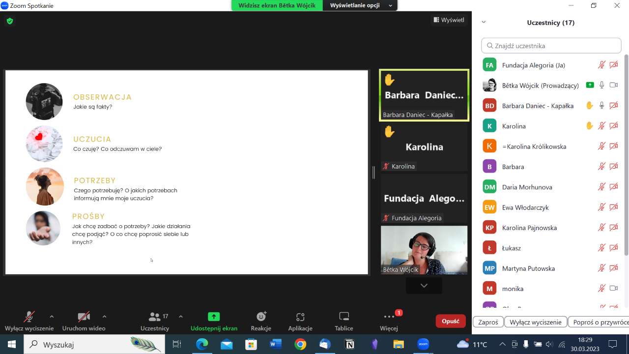 Uczestnicy poznali w praktyce założenia Porozumienia bez Przemocy (NVC, Nonviolent Communication) i model 4 kroków, który stanowi mapę komunikacji opartej na empatii. Warsztaty poprowadziła Bietka Wójcik