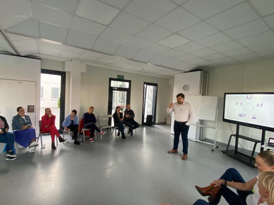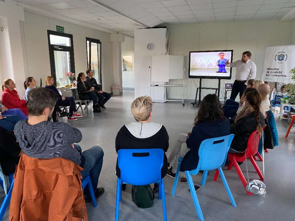 Warsztaty dla nauczycieli poprowadził Łukasz Wojtacha. Poświęcone one były zdobyciu takich umiejętności, które pomogą nauczycielom, jeszcze mocnej pomagać rodzinom swoich uczniów w rozwijaniu kultury opartej na wzajemnym zrozumieniu się, otwartej relacji oraz empatycznego dialogu.