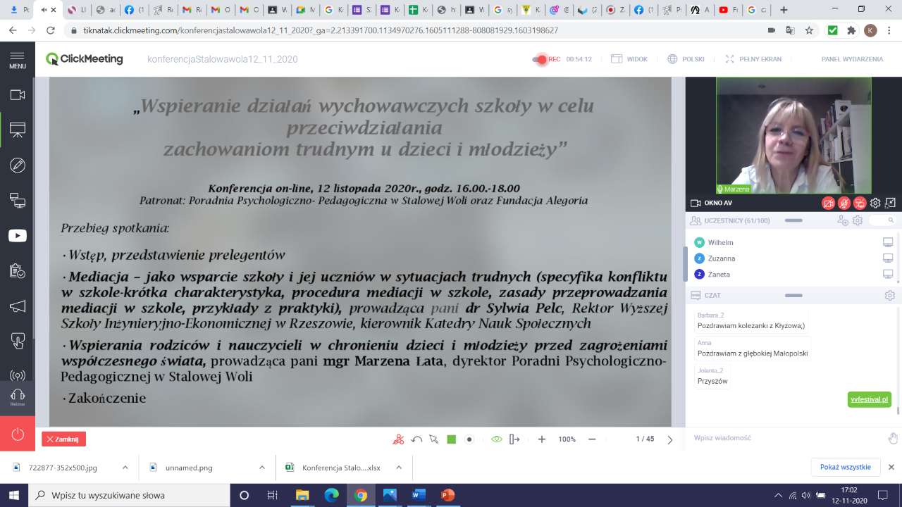 Konferencja online: "Wspieranie rodziców i nauczycieli w chronieniu dzieci i młodzieży przed zagrożeniami współczesnego świata: Stalowa Wola, 12.11.2020