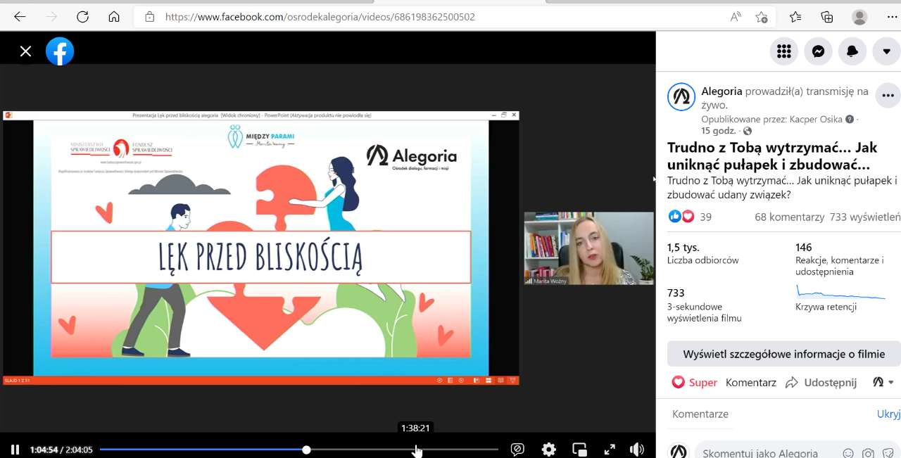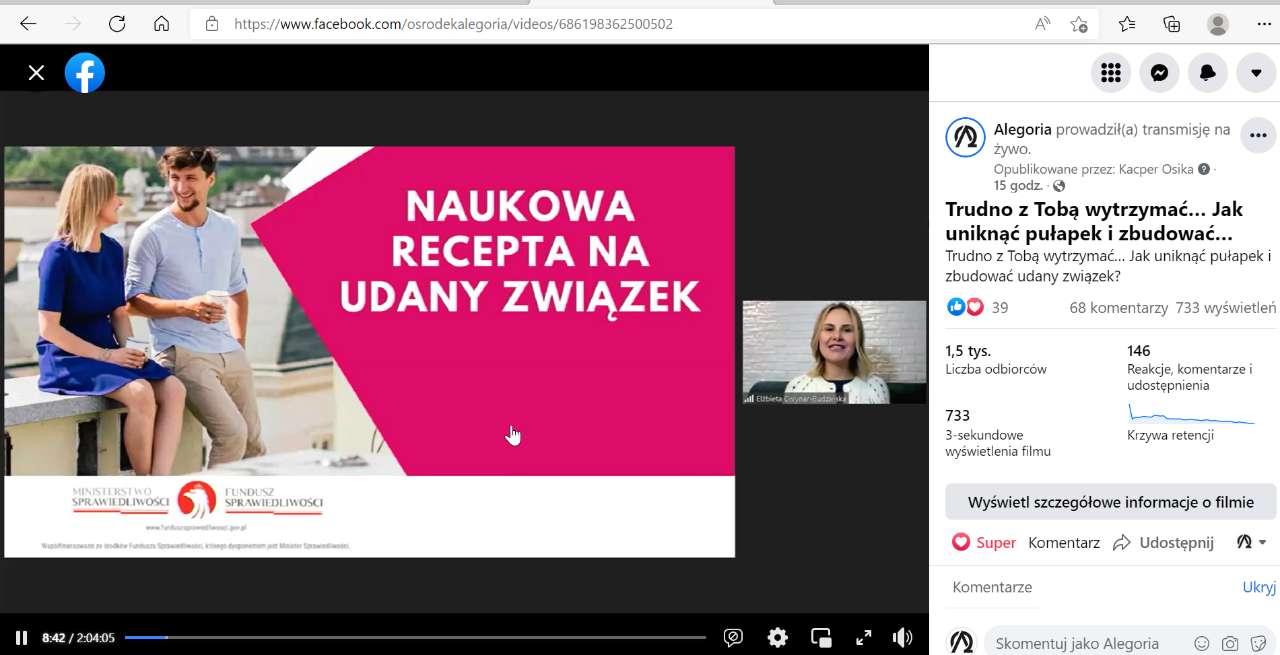 Psycholog i psychoterapeutka, której celem jest poprawa jakości życia par. Jest autorką e-booków, kursów i programów dla par, które tworzy w ramach przestrzeni internetowej Między Parami. Pomaga odnaleźć drogę do wyjścia z kryzysów, akceptować zmiany relacji, a także budować i przywracać lepsze relacje ze sobą i z drugim człowiekiem. Prowadzi podcast “Żywiołowe Związki”.